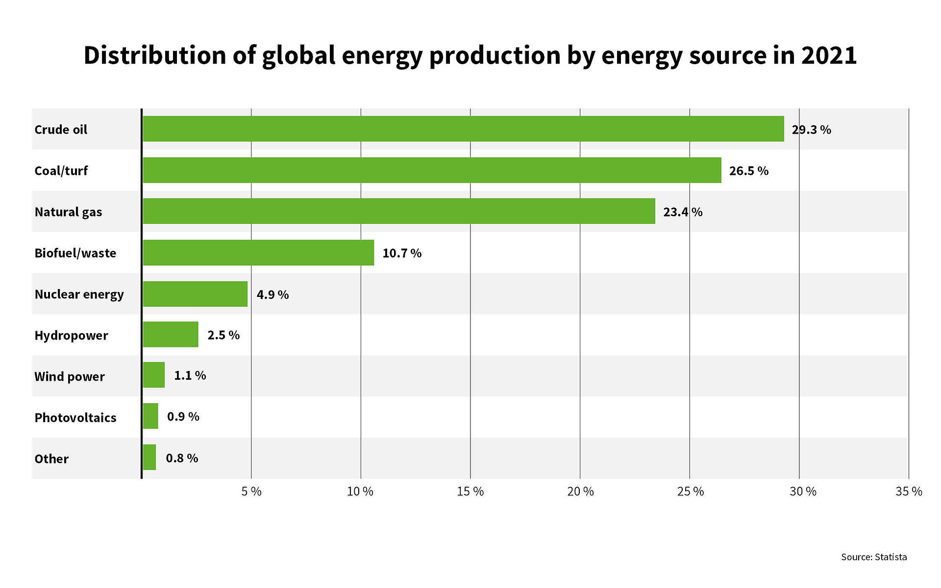 不影响气候的能源生产是我们这个时代面临的主要环境挑战之一。2021 年全球能源生产在能源来源方面的分布情况* 显示,尽管可再生能源的比例在不断增加,但化石燃料仍占最大份额。考虑到能源需求在 2050 年之前都将持续增长,扩大可再生能源的生产就显得尤为重要。因此,世界各地的许多研究人员都致力于寻找新的、高效的方法来生产气候中立的能源。